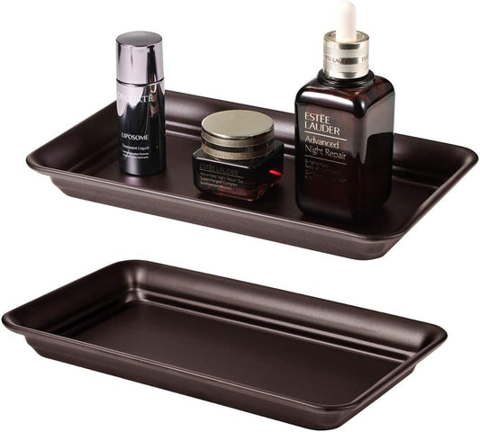Vintage Farmhouse Decor Metal Vanity Tray(2 Pack),Countertop Guest Hand Towel Storage Organizer Tray Dispenser, Sturdy Holder for Perfume,Cosmetics, Jewelry, Makeup Bathroom Organizer (Bronze)